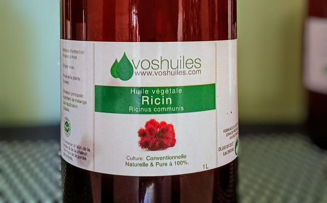 Ne pas ingérer (huile de ricin cosmétique ≠ purgative).