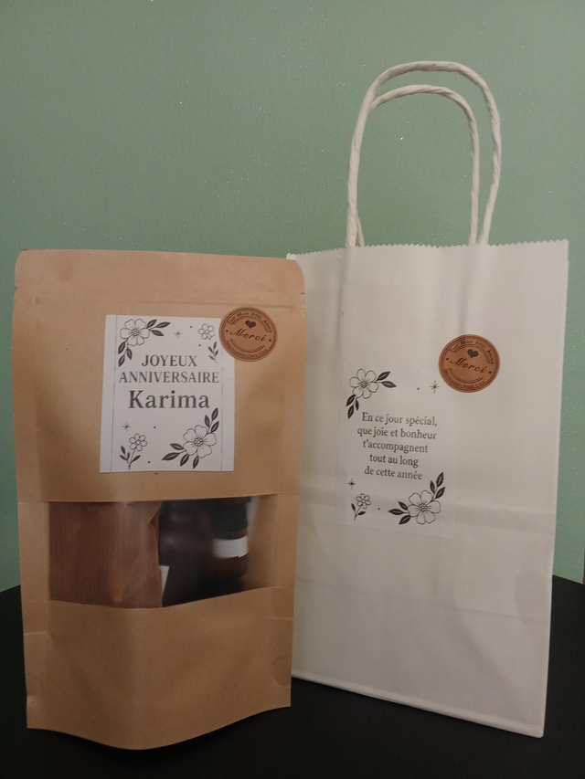 Pré-commander vos étiquettes personnalisées. Ajouter votre texte lors du règlement de la facture, à coller directement sur un kit.